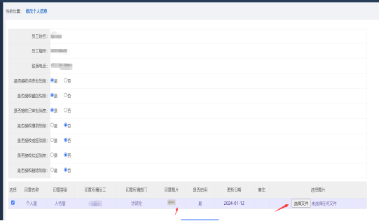 3、签章图片会默认生成红色人名章,修改个人信息可以上传签章图片(签章需要手写,拍成图片,再上传。图片大小不能超过400k)。