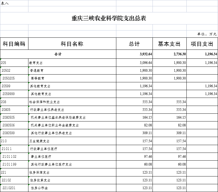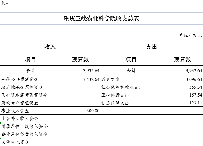重庆三峡农业科学院政府性基金预算支出表 |